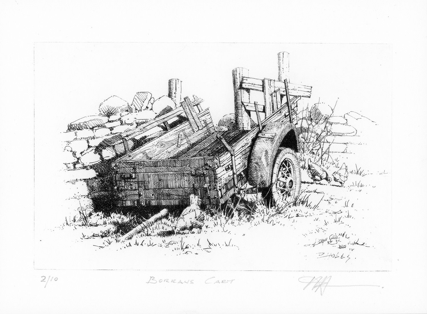Drypoint etchings are original prints not reproductions, having been manually created by the artist. Each piece is hand crafted and no two pieces are quite the same.